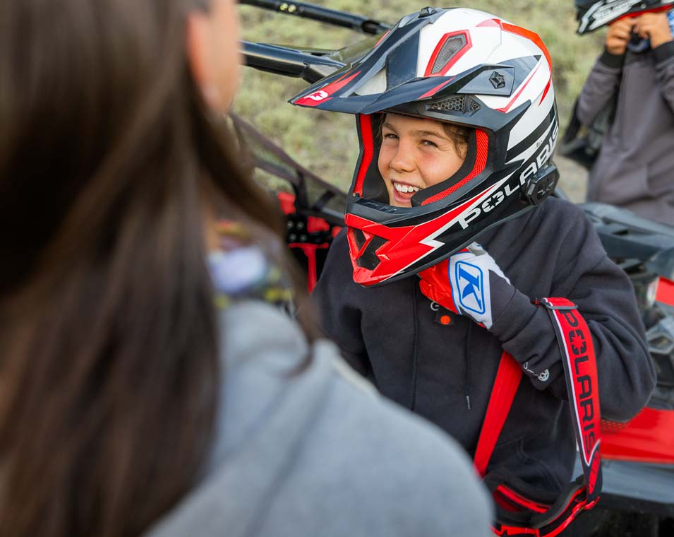 Du kan være trygg på at RZR er utstyrt med bransjeledende sikkerhetsfunksjoner, bl.a. start med PIN-kode, justerbar hastighetsbegrenser, geogjerder, sikkerhetsnett, sikkerhetssett som er eksklusivt i bransjen, og helmet aware-teknologi.